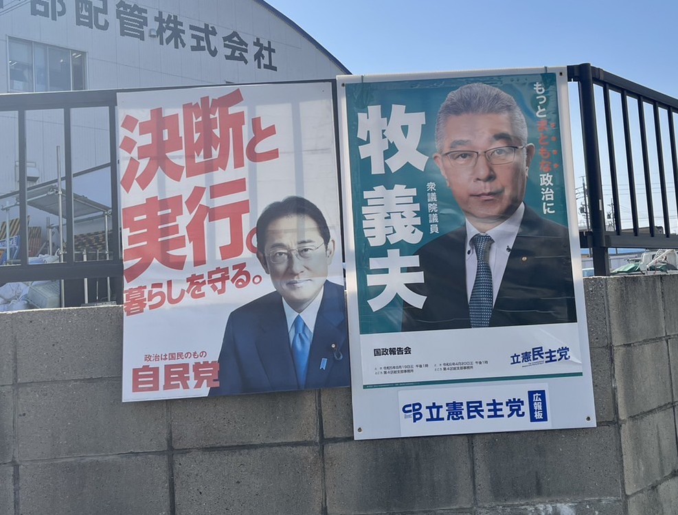 自民と立憲民主党というバランスを考えての掲示です。